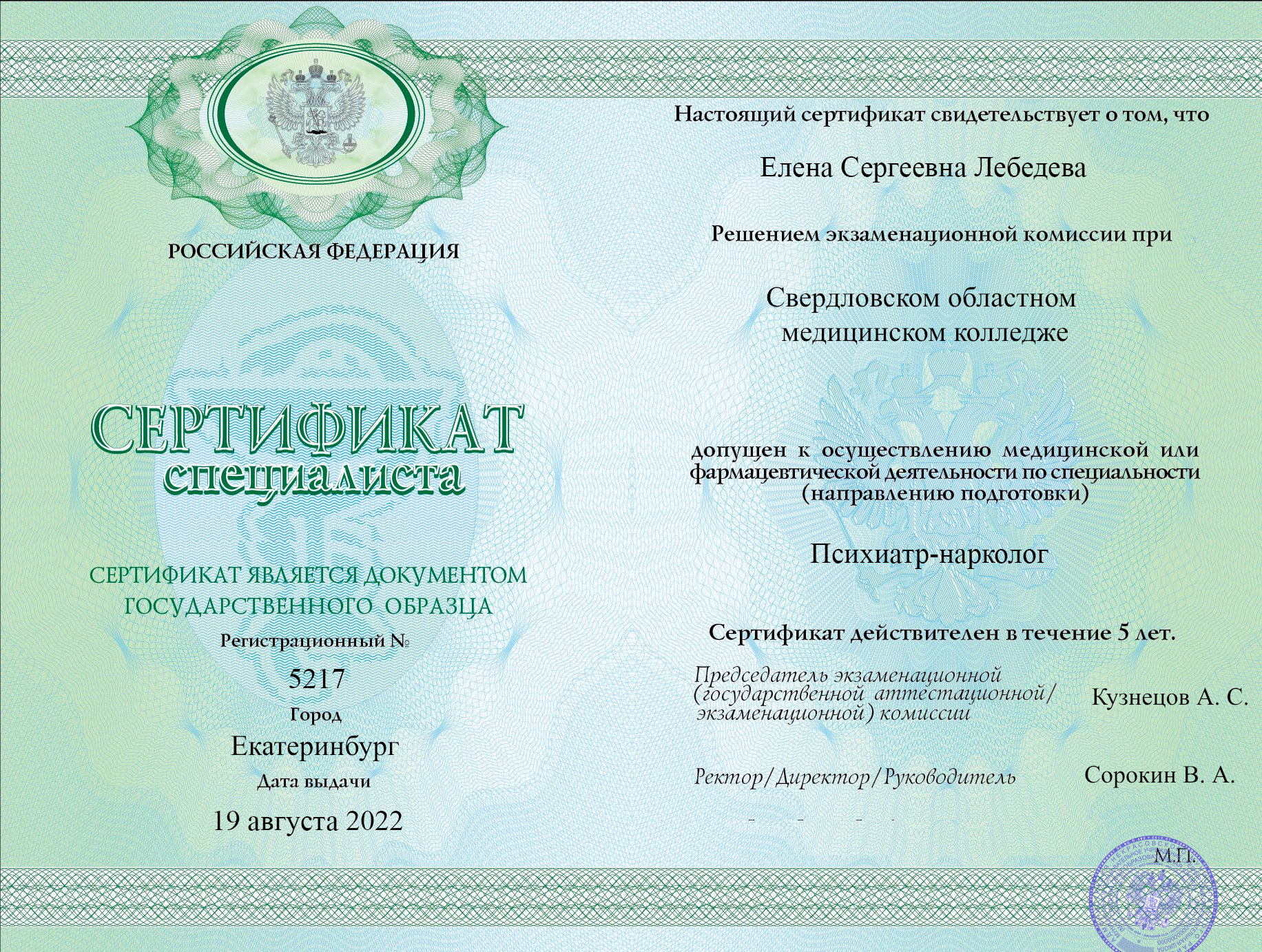 Елена Сергеевна Лебедева врач нарколог клиники доктора Стукаловой в Астрахани